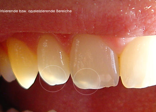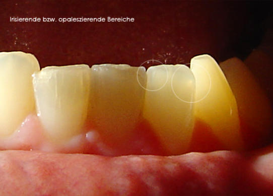 Seitenzähne, die der direkten Lichteinwirkung ausgesetzt sind.